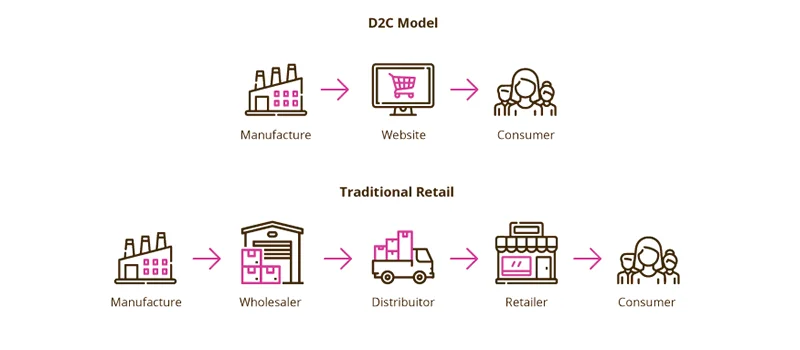 The direct-to-consumer (D2C) model enables businesses to sell their products directly to customers, compared to traditional retail models that depend on middlemen like wholesalers or distributors. Companies and consumers equally can gain from this approach in a number of ways, including increased control over brand messaging, better customer service, and frequently reduced expenses.