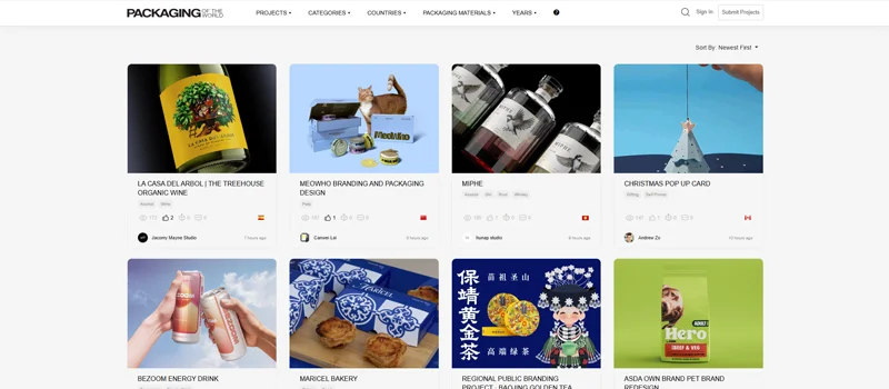 A popular website named Packaging of the World features imaginative packaging designs from all over the world. A wide variety of projects, from bright and attractive layouts to simple, minimalist styles, can be found on the website. Each article has detailed photos, project summaries, and is often the design’s inspiration. It is a great spot to research trends and get inspiration for creating your own packaging.