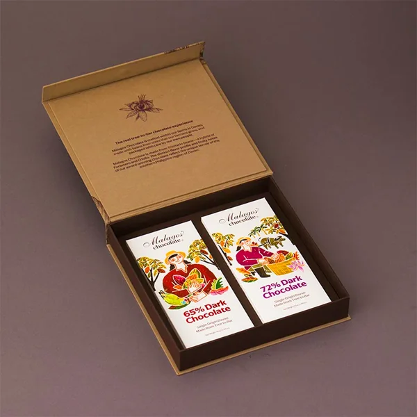 A chocolate bar box is a strong container with cardboard or paper that is meant to contain and protect one or more candy bars. Unlike regular candy bars, a custom box is usually used for high-end gift chocolates to give it a premium feel.