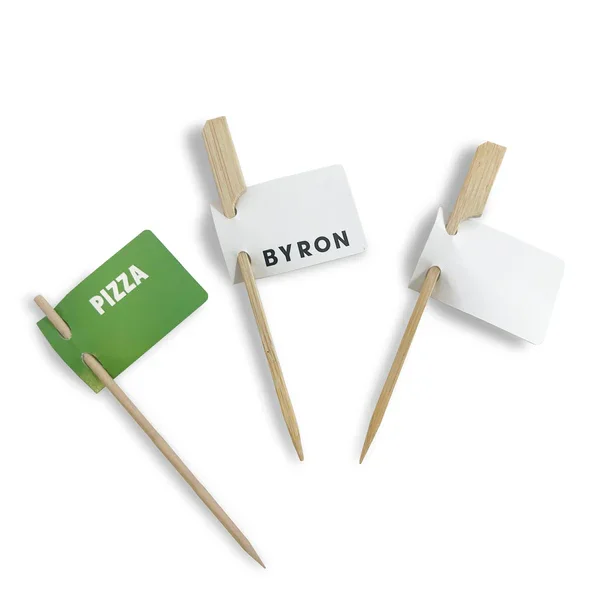 Add a personal touch to your items by presenting them with food flags. It makes the brand more presentable, visually appealing, and enticing,