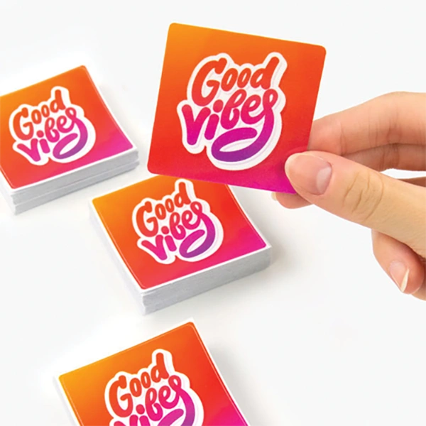 Then, we have our square stickers available in various sizes based on what you need. We have the perfect fit for whatever you want: small accents or bold statement pieces. The adhesive backing sticks to most surfaces, including laptops, notebooks, surface or water bottles and more. These stickers promote easy application, and sticking power.